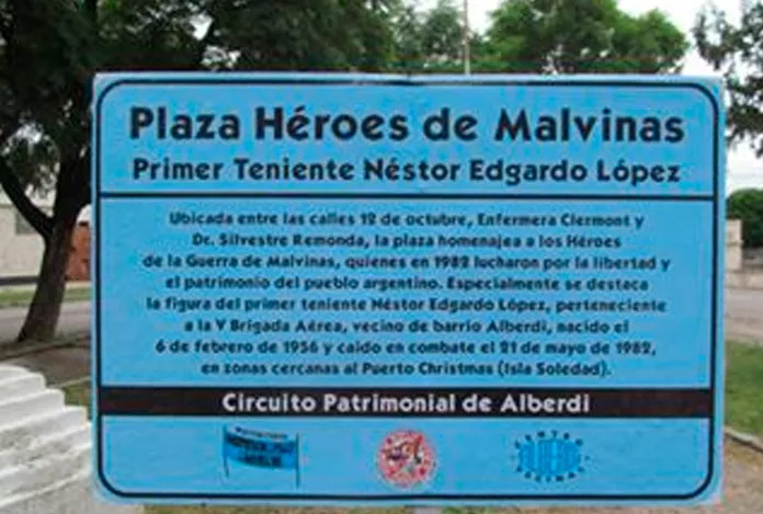 También se insistió a la Municipalidad de Córdoba para que de una vez se designe con el nombre de Primer Teniente Néstor López, un vecino de Alberdi caído en combate, a esta plaza. Se destacó que el cartel que se puso en conmemoración de este año, es el primero de una serie de carteles que señalarán hechos y lugares de todo el gran territorio de Alberdi. También resaltamos la actitud desinteresada y patriótica del programa de radio Raíces Libres, en la persona de locutor Mansilla, que transmitieron el acto en directo.