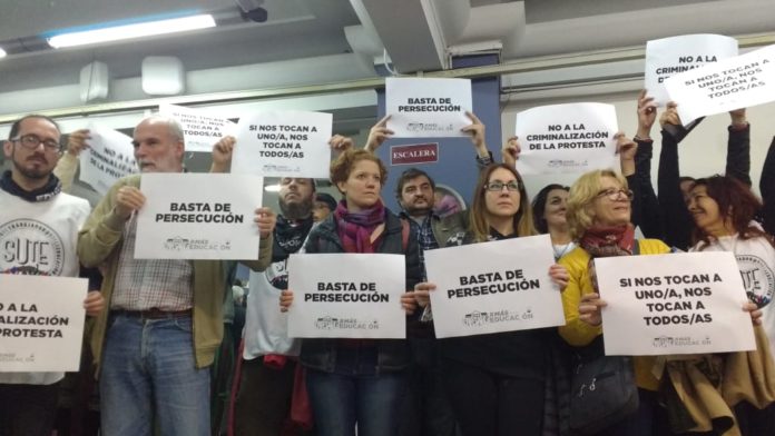 El sindicato SUTE lanzó una campaña contra la persecución que el gobierno provincial está llevando adelante contra los docentes. “En particular, exigimos el sobreseimiento de los/as docentes Martín Dalmau, Alejandra Castelli y Pablo Massutti, imputados arbitrariamente por haber sido parte, el 4 de junio de 2018, de un plenario de delegados/as del SUTE frente a la Subsecretaría de Trabajo que exigía la reapertura de la paritaria salarial”, expresa en su solicitada. Esta movilización fue una de tantas concentraciones y movilizaciones “que no causan daños a la sociedad, ni perjuicio alguno, pero que sí sirven para exponer lo que el gobierno oculta”.