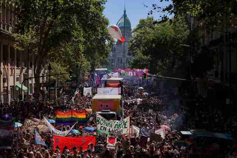 La amplia movilización del 1F en rechazo al discurso discriminador y facho en Davos, fue un primer cachetazo para Milei en este año. El escándalo por la estafa internacional del presidente con $Libra fue la segunda cachetada, protagonizada a puro tuit y selfie con cada uno de sus cómplices. El gobierno libertario se cebó con la llegada de Trump a la Casa Blanca y replicó bizarramente su discurso contra las minorías y los inmigrantes, pero agregando a las mujeres. Lo mismo que con el lanzamiento de la cripto moneda a su nombre.