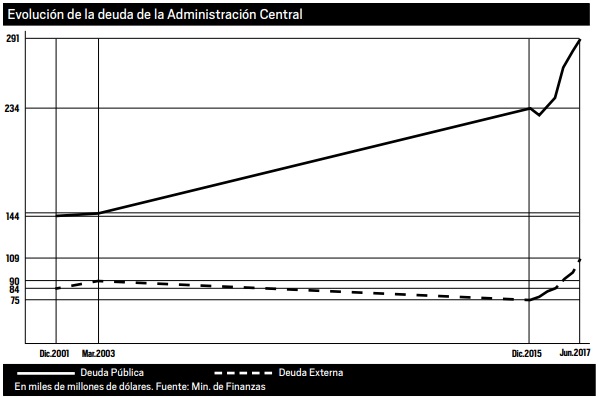 Con esta política de endeudamiento descontrolado, la deuda externa creció un 45% en tan sólo dos años, contando apenas los datos oficiales disponibles hasta junio de 2017 (ver infografía). Y según el Instituto Abdala, el peso de la deuda externa del sector público nacional pasó del 14,1% del PBI en 2015 al 21,4% en 2017. El agravado agujero comercial al igual que la fuga de divisas –que se financian con endeudamiento–estuvo invisible en el discurso presidencial.