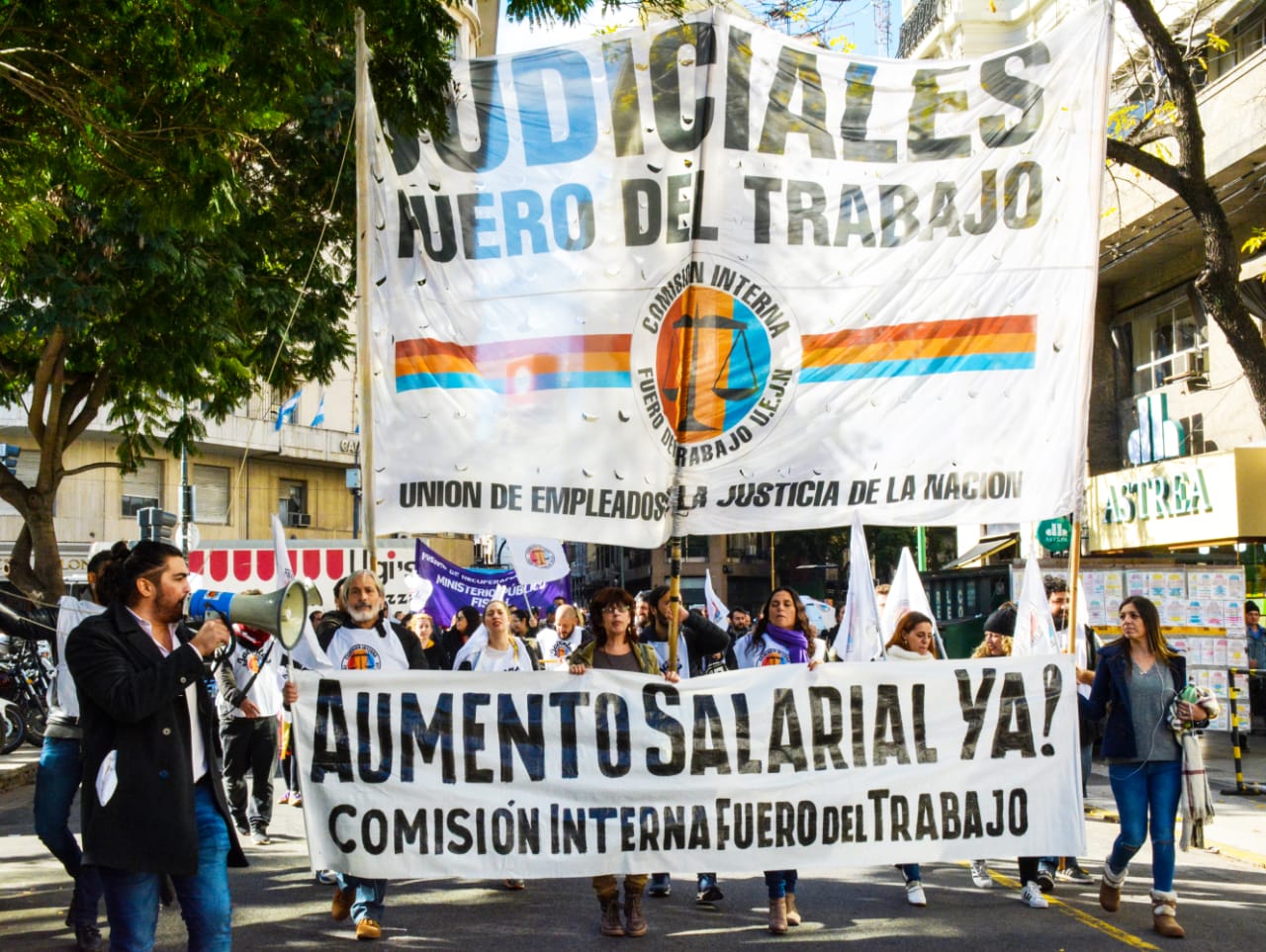 En una nueva jornada de lucha en defensa del salario y para exigir la declaración de la emergencia judicial, la Unión de Empleados de la Justicia de la Nación (UEJN) se movilizó este martes al Palacio de Justicia cumpliendo así la primera jornada de lucha de este paro de 36 horas decretado a nivel nacional, que continuará mañana miércoles con un cese de actividades de 24 Hs.