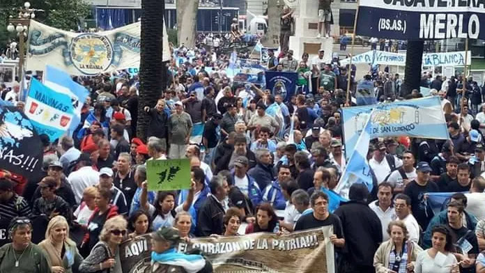 Mientras la canciller Malcorra persiste en sus buenos modales con Inglaterra y a poco de cumplirse un nuevo aniversario de la recuperación, más de 5.000 ex combatientes y familiares de los caídos de todo el país debieron movilizarse el 9 de marzo en la Capital para ser escuchados. La jornada fue convocada por la “Confederación de Combatientes de Malvinas de la República Argentina” y la “Comisión de Familiares de Caídos”. Marcharon al Pami, al Anses, al Ministerio de Defensa y a la Cancillería, y finalizaron luego en el Cenotafio de Plaza San Martín.