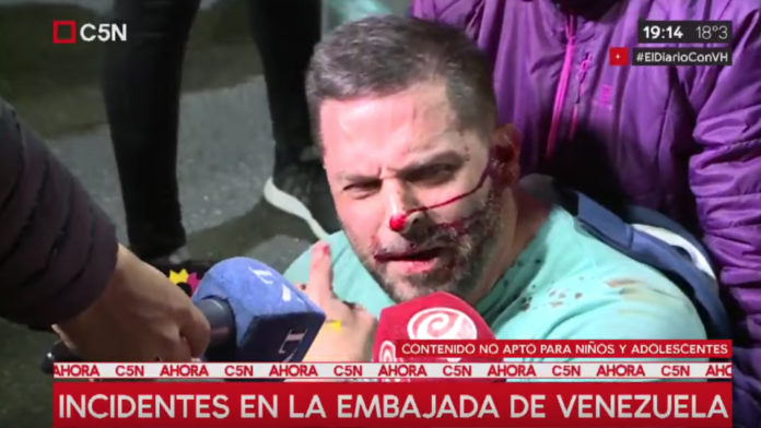 Ante la crítica y grave situación venezolana, el gobierno de Cambiemos no sólo tomó posición explícita a favor del golpismo de Guaidó apoyado por los EEUU, sino que lo evidencia groseramente con la represión policial. Dos grupos de venezolanos se habían congregado ayer ante la embajada para manifestar entorno a los recientes acontecimientos en su país: uno a favor y otro en contra de Maduro. La policía de la Ciudad primero se posicionó entre ambos grupos separándolos, pero luego reprimió… al grupo chavista. En la represión un joven quedó tendido en el piso, sangrando por su oído a causa de un disparo.