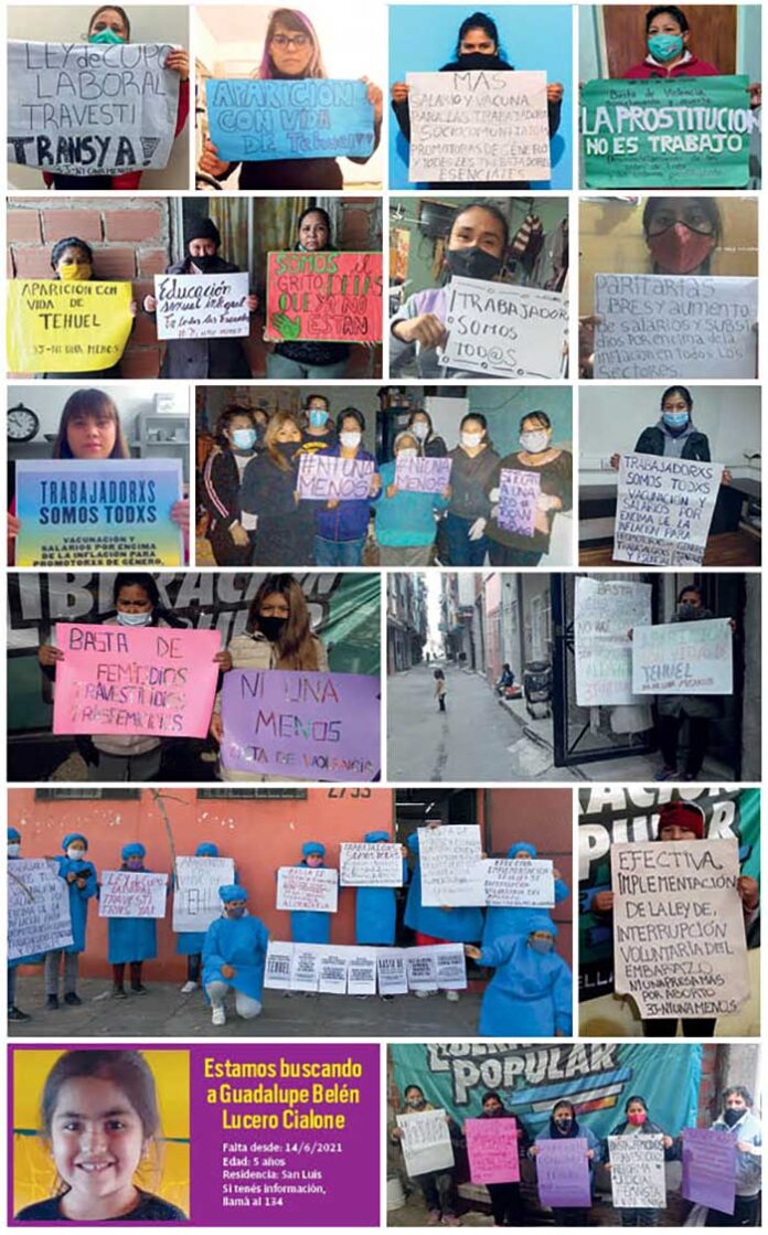 • Ni una menos. Basta de femicidios: Reforma judicial feminista ya! Basta de revictimización. Celeridad y atención integral en las situaciones de violencia de género. No a la prescripción en los delitos de abuso sexual en la infancia y adolescencia. Aparición con vida de Tehuel de la Torre y de Guadalupe Lucero.