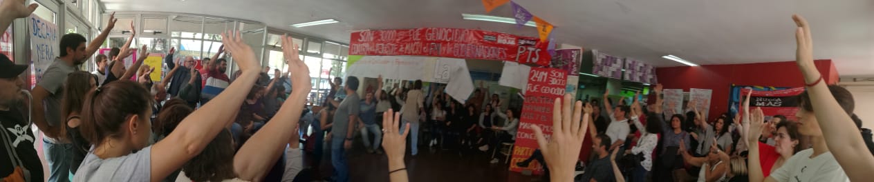 En un conflicto que fue de menor a mayor y con total participación de los trabajadores, esperando intercambio con la decana, se realizaron paros de 2 horas por turno, de 24 y 48 horas. El último, de 48 horas los días 4 y 5 de abril, a 50 días del comienzo del conflicto, tuvo como cierre una masiva asamblea que decidió un paro de 72 horas: el 8, 9 y 10 de abril; y en caso de no mediar diálogo, paro por tiempo indeterminado a partir del 15 de abril. La asamblea tuvo numerosas intervenciones en sentido de seguir las medidas de fuerza y dejó bien en claro que la pelea en Sociales es también contra la política del gobierno macrista. En la primera reunión del 2019 del Consejo Directivo, el consejero docente radical Miguel de Luca, propuso que no-docentes y estudiantes hablen al final, en un claro ejemplo de que no querían escuchar los reclamos. Se sometió a votación quirúrgica que terminó en empate, resolviendo la decana con su voto en contra de los trabajadores y estudiantes. Toda una expresión de que se terminó la disputa en la gestión en favor de Yacobitti, los suyos y la UES.